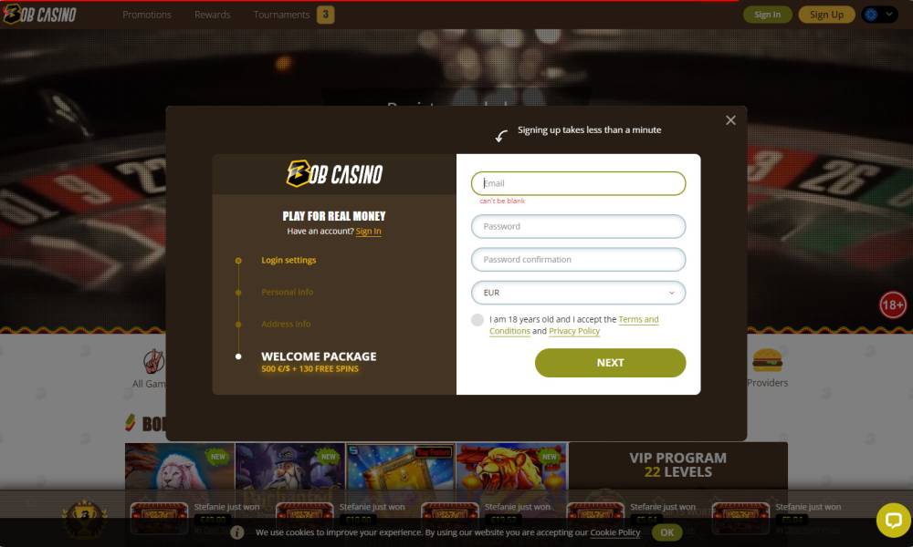 📝 Signup at Bob Casino (Registration)