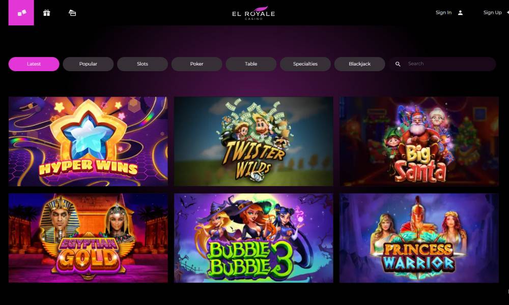 At El Royale, customers can play from an array of RTG games. There is no software by other providers. The collection is not very impressive, but you will find titles of all the most popular categories, including slots, blackjacks, pokers, video pokers, and others.
