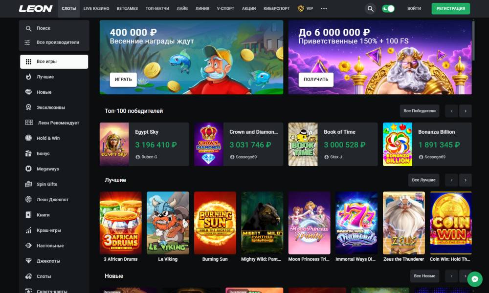 Leon is an excellent option if you're looking for a reliable online casino with a great selection of games, a user-friendly interface, and fast payouts. It's not just a casino; it's part of an international entertainment brand since 2008. Here, you will find thousands of slots from leading providers, popular table games, live casinos with real dealers, and you can also bet on sports.