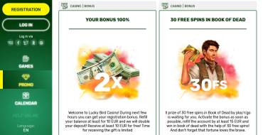 Lucky Bird online casino opened in 2019 and immediately attracted many fans of online gambling with a large selection of slots, a variety of bonus program, regular tournaments and other attractive opportunities. The review tells about all the services that the institution provides.