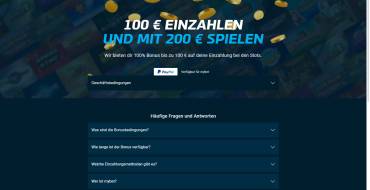 For new players from Germany only, a 100% bonus of up to €200 is offered on the first deposit. Additionally, reload bonuses are available for regular players. All bonuses are subject to the casino's bonus program rules.