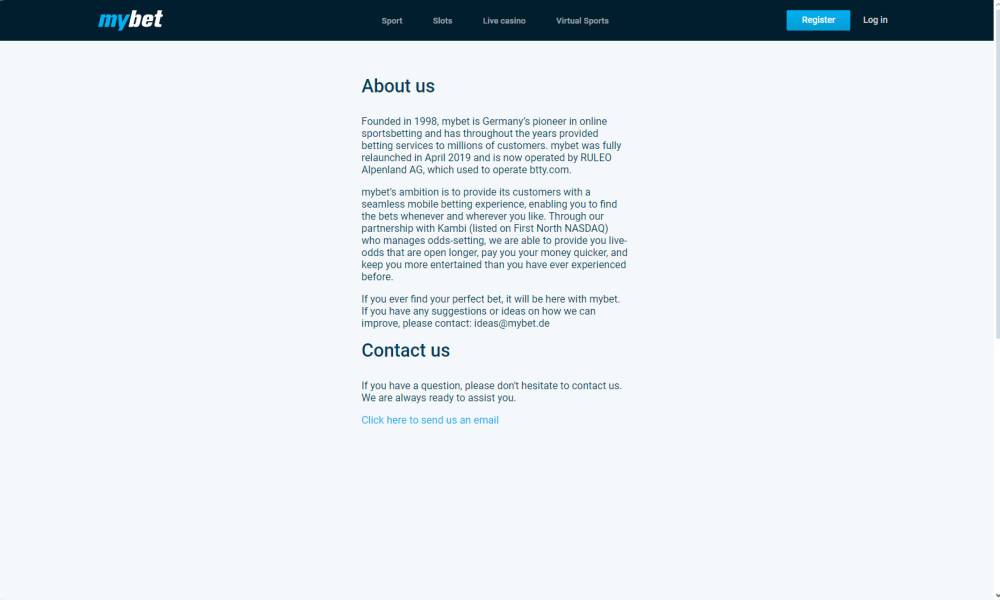 The MyBet brand was previously owned by Personal Exchange International Limited, headquartered in Malta. Currently, the owner and operator of the club is the Austrian company RULEO Alpenland AG. The legal address and other important information are on the official website.