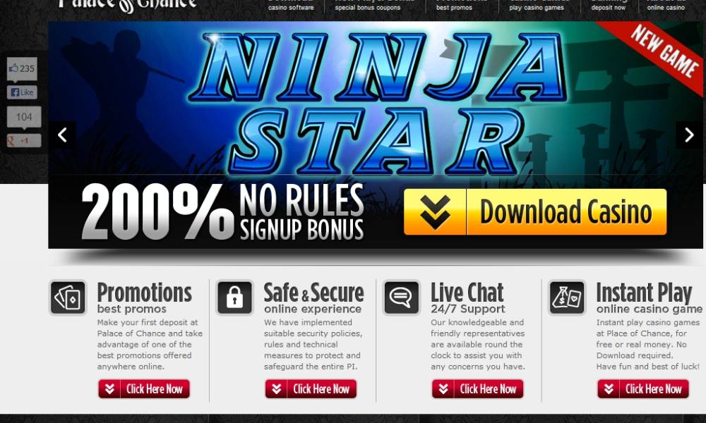 Hi to everyone who likes to take a ride at online casinos! I've been familiar with Palace of Chance for a long time and always my attitude towards it has been mixed. It's a classic, old school RTG casino. These guys have been in business for a long time and their software is known all over the world. There's no question about it: the lobby looks decent, bonuses promise fat bonuses.