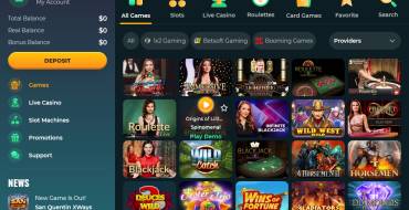 The array of games will not allow you to be bored. It includes high-quality titles from popular software providers and young studios.