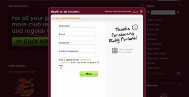 To sign up with RubyFortune, you need to fill out the registration form. You have to enter your name, e-mail, address, and other personal details. Then you must activate the account. After that, you may log in, deposit money, claim bonuses, and play the casino for money.