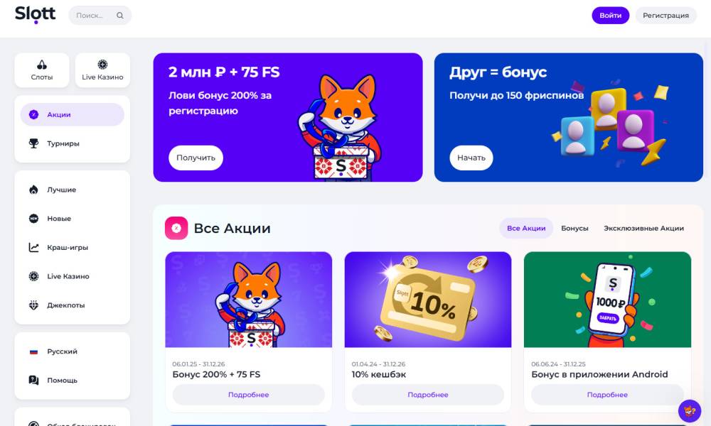 Slott Casino offers jackpot games, including slots with progressive jackpots. These are models from leading software providers and young studios.