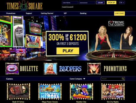 Times Square online casino was named after the famous Times Square, located in Manhattan, New York. It is the city’s and country’s symbol, known as «crossroad of the world», annually passed by hundreds thousands pedestrians and cars. The review of this online casino would help the readers understand if this website has chances become as popular as the famous spot at online gambling market.