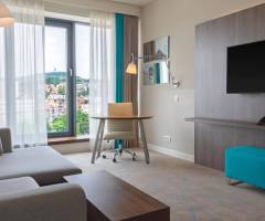 - Suite, 1 Bedroom Suite, 1 King, City view: A suite with a king-size bed. King-size bed, sofa and desk for up to three guests. vacationers.