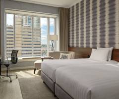Rotterdam Marriott Hotel is located next to a casino. The five-star hotel provides an excellent level of comfort for those who choose to stay there. 228 rooms are located on 15 floors, there is a fitness center, 5 conference rooms for seminars and meetings, restaurant, bar and lounge. Free Wi-Fi is available throughout the Free Wi-Fi is available throughout the hotel. At the guests' disposal Parking is available for EUR 4 per hour or EUR 30 per day. Guests are offered Continental breakfasts from €17.50 per person. The hotel rooms have color TVs. Hotel rooms have color TVs, air conditioning, minibars, tea/coffee making facilities. tea/coffee making facilities.