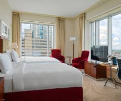 - Deluxe King Room: This 30 sqm room is furnished with a king-size bed, a sofa, a table with armchairs and a window overlooking the city. Deluxe Twin Room: This room overlooks the city center and features twin beds, a sitting area.