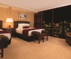 - Deluxe Masquerade Tower 1 King: A cozy room with modern decor and beautiful views of the Las Vegas Strip.