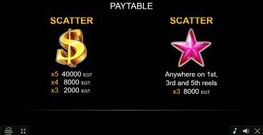 The Scatter symbol is a pink star. It appears on all positions of reels 1, 3 and 5 and brings winnings.