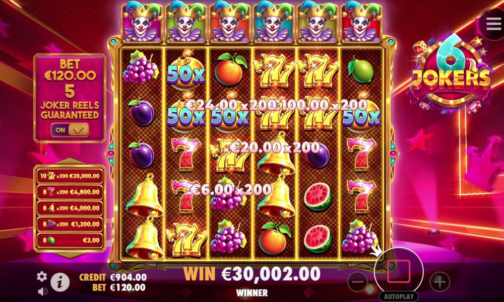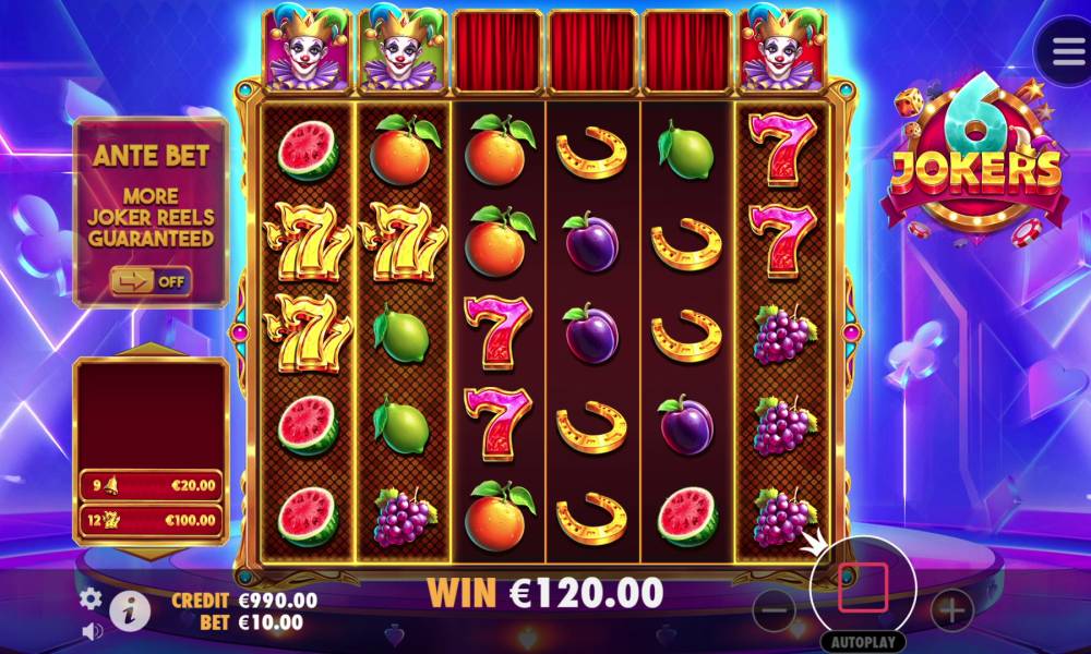 The 6 Jokers slot is an interesting development by Pragmatic Play, where authentic fruit retro stylistics are harmoniously combined with innovation, and expensive prizes are hidden behind the circus red curtains.