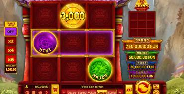 9 Lions Bonus Game - triggered by collecting nine lions on a mini grid, the player selects one of the lions to receive a cash prize or one of the jackpots.