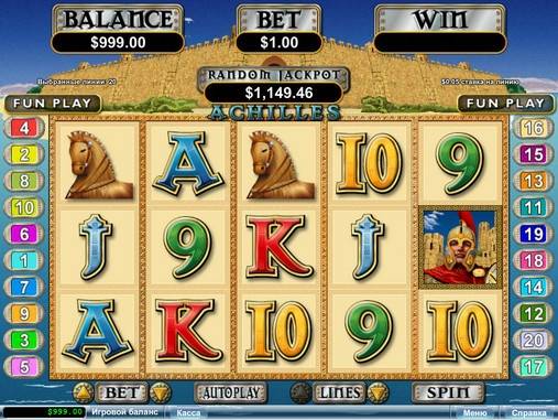 Mythology of Ancient Greece attracts attention of people up to now. Achilles, one of its main characters, surely inspires wonders by his heroism and fidelity to duty. He knew that he was going to die in the Trojan War; however, the hero didn’t give up his mission taking challenge of fortune. He died, but became a hero, who many people adore still. A new online slot machine named Achilles developed by RTG is a perfect chance to touch the pages of human history and feel their selves as participants of those unforgettable events for the followers of the exciting gaming world. Traditional five gaming reels and two dozens of active paylines, an excellent graphics, and suitable background music make the game especially exciting. Moreover, there are the really large winnings. What else the player can wish?