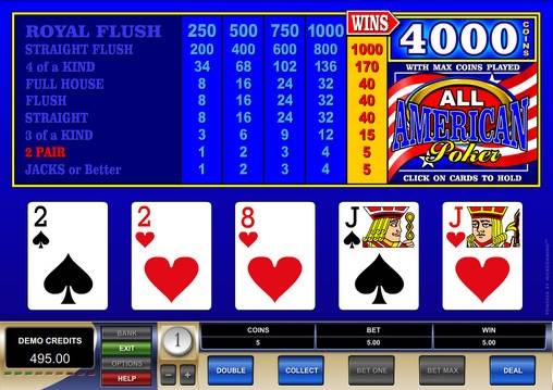 All American Video Poker is a free online video poker. A standard 52-card deck without jokers is used in this game. All cards are shuffled before each deal.