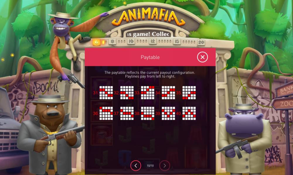 Animafia is a slot with 5 reels and 40 win lines. To win, you need to collect combinations of identical signs on the neighboring reels, starting from the first one on the left. Range bets at the level of 20 to 10,000 coins per spin. The maximum winnings are equal to 3200x of the bet. Symbols, bonuses, free spins make the game interesting and diverse.