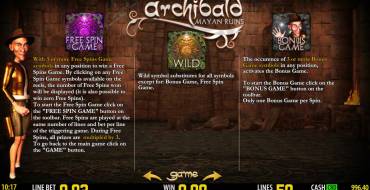 The team of Casinoz starts describing the series of slot machines produced by World Match company and devoted to the adventures of the courageous and restless traveller - Archibald, with the review of Archibald – Mayan Ruins video slot. In his company you are going to visit different dangerous parts of our planet and your adventures can get started from the jungles of the South America, where you are going to research forsaken pyramids of Maya.