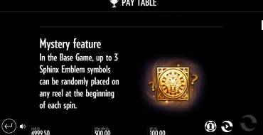 Beat the Beast: Mighty Sphinx is a video slot that features 5 reels and 9 paylines across a 5x3 matrix. All lines are always active on default.