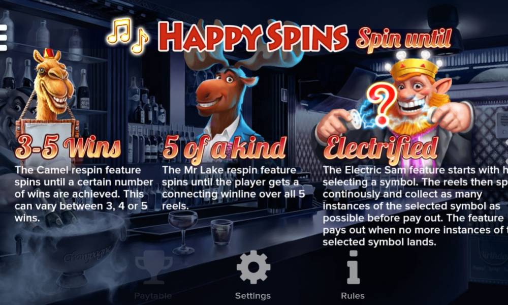 Any spin can start the prize draws of the Happy Spins series. These are represented by characters from other Elk Studios slots. These can be free spins, joker features and themed options.