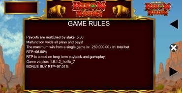 Casinoz experts believe that try online slot Bison Rising Megaways is worth every gambling person. It is implemented an interesting mechanics, there are bonuses and even the ability to buy free spins. It is the free spins that bring the biggest profit. The machine has good technical characteristics, so you can count on the payoff from the slot and a pleasant profitable pastime.