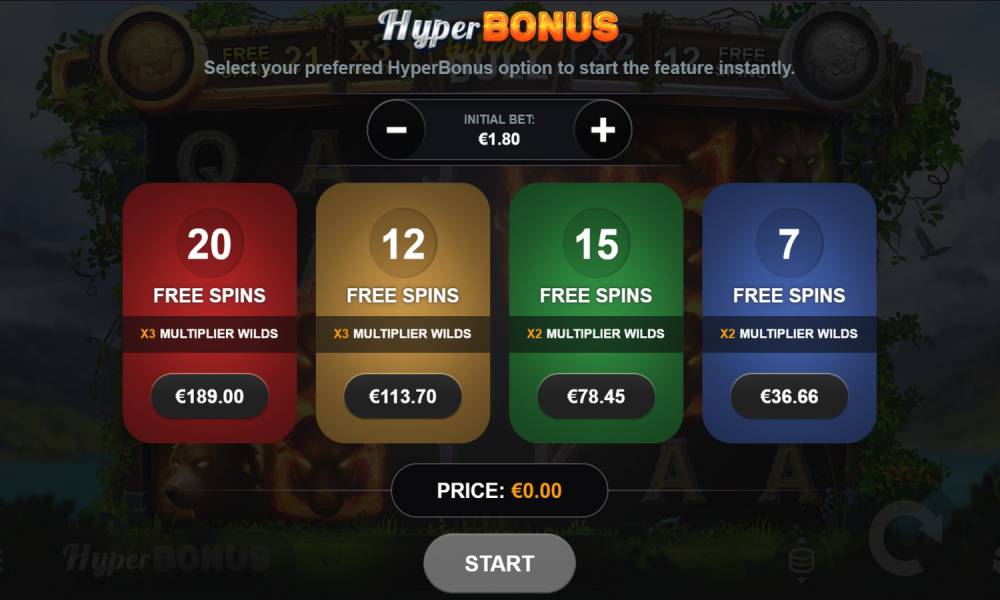 • HyperBonus. There are 4 free spin packages on sale here: with X2 Wild at 7 or 12 FS, and X3 Wild at 15 and 20 FS.