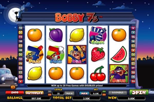Bobby 7s is a video slot with five reels and three rows of symbols at the screen. Playing this slot machine is possible in range from one to twenty five active lines. The acceptable bet per each of them is in range from one cent to two euro. This way, the maximal bet per spin is fifty euro.