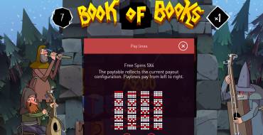 The Book of Books slot is a classic game with a five-reel field that can be expanded. The base game uses 5×3 field, and during bonuses, such as free spins, it increases to 5×5. Winning combinations are formed on the lines from left to right, starting from the first reel, and are paid for three or more identical symbols on an active line. The game has up to 40 winning lines, the number of which depends on the current game mode. the current game mode.