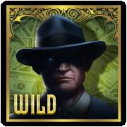 Wild. The symbol is represented in the form of a bandit in a hat, and a lot of banknotes can be seen in the background. The Wild substitutes for all symbols on the field except the scatter. In The Lock Up feature, it is not only a substitute but also a high paying symbol.