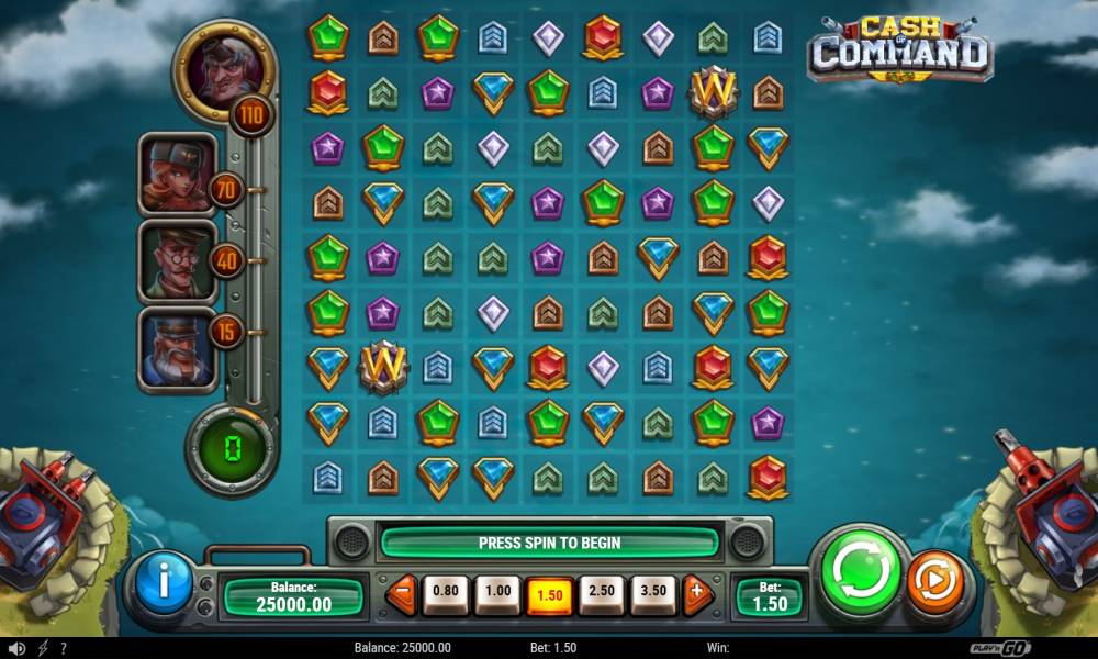 The playing field of the Cash of Command slot machine from the Play'n Go provider is standard, it consists of a 9x9 grid. Payouts in the game are made by the Cluster Pays system.