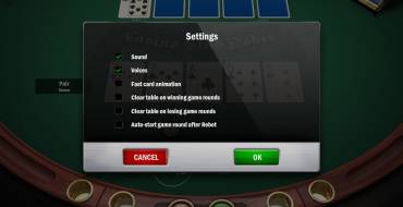 During the game, the user, who makes the ante, receives five cards. The croupier deals five cards to himself, facing up only one of them. The client estimates the rank of his hand and decides what to do. Only two options are available:
