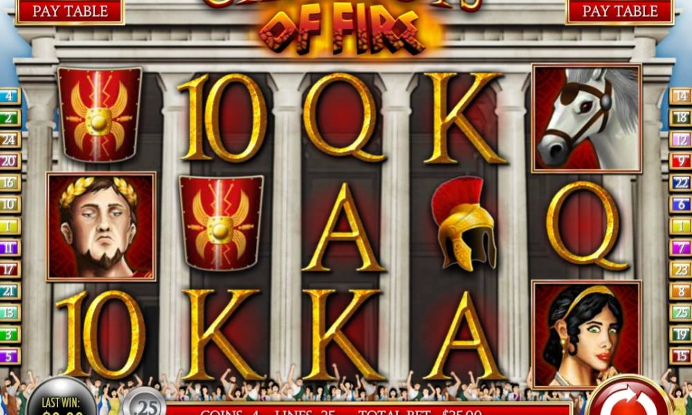 As soon as you launch «Chariots of Fire» slot machine, you will see playing cards, a red shield, a brunette girl, a white horse, a crossbow and a legionnaire’s helmet, as well as an emperor.
