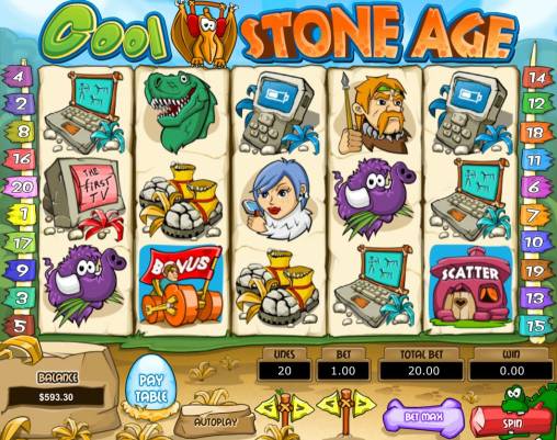 The gaming symbols, imaged at the screen of «Cool Stone Age» slot machine, are primitive men, dinosaurs, mammoths, as well as TV, computers and other devices made of wood.
