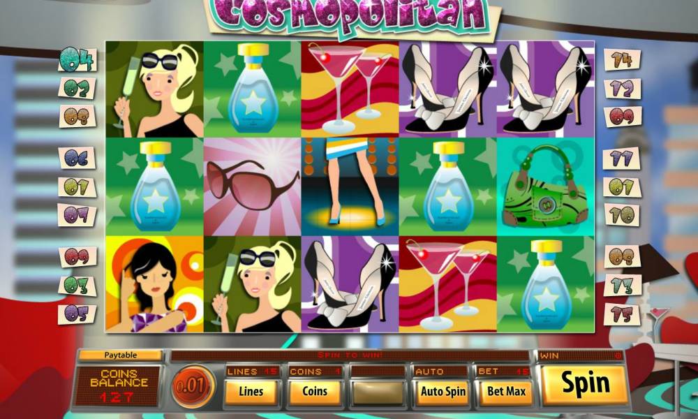 Cosmopolitan is a model with five reels and fifteen pay lines. It is possible to stake up to five coins per each of the lines in value of one, five, ten or twenty five cents. This way, the maximal acceptable bet is 18,75 euro per spin.