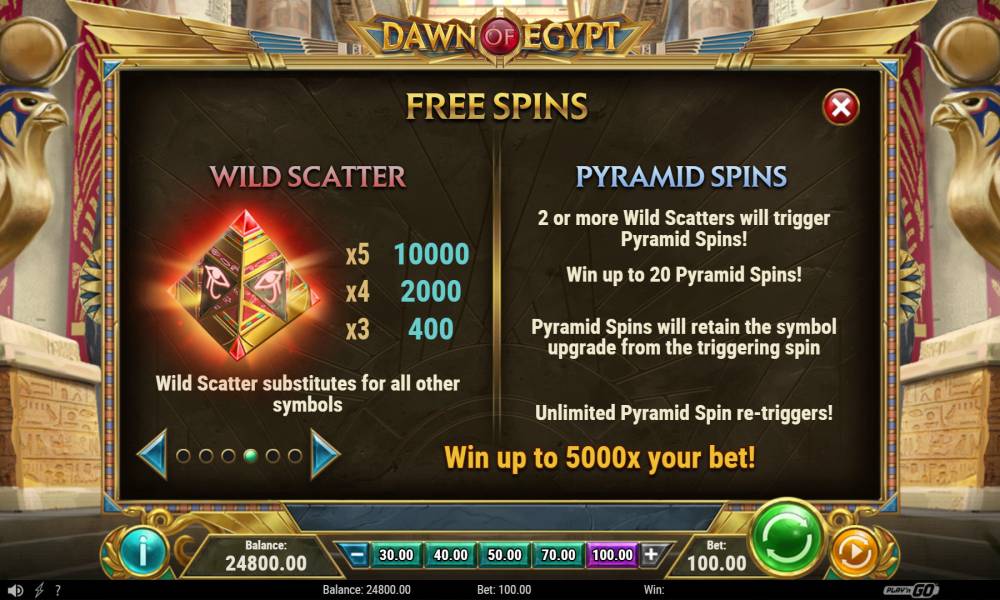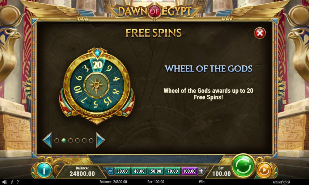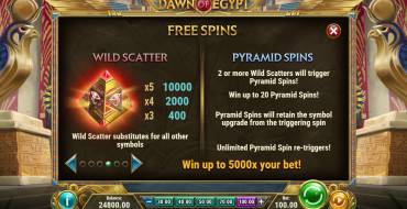 Please read about special symbols and prize options of Dawn of Egypt by Play'n Go below in the review at Casinoz.club.