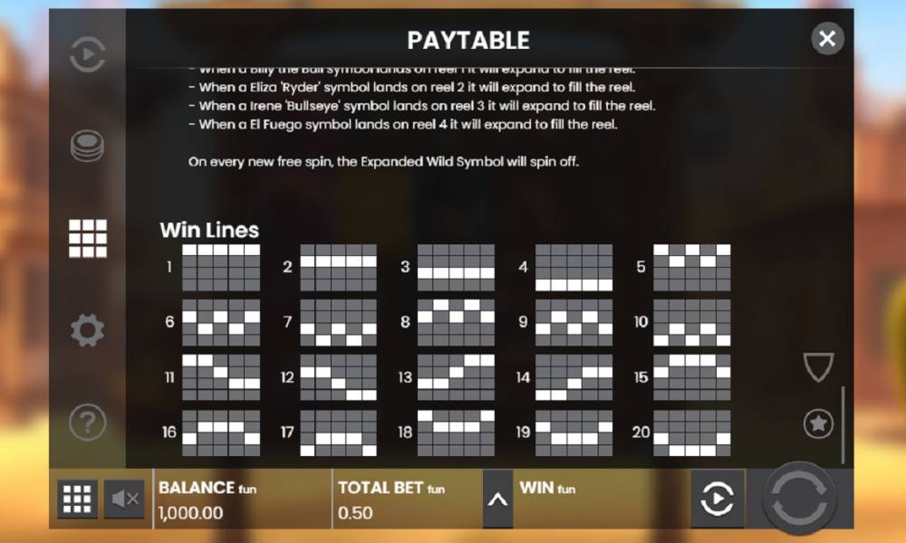 The main high-paying theme symbols, which in the bonus round become also jokers, - the invariably cigar-smoking Billy the Bull, blonde Eliza, Irene in a mask "Bullseye" and El Fuego with an eye patch. A holstered nagan, a flask, boots and horseshoes are less prized.
