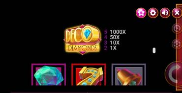 «Deco Diamonds» doesn't have a gambling feature. Exceptions from the general rules and bonus options are discussed below in the review.