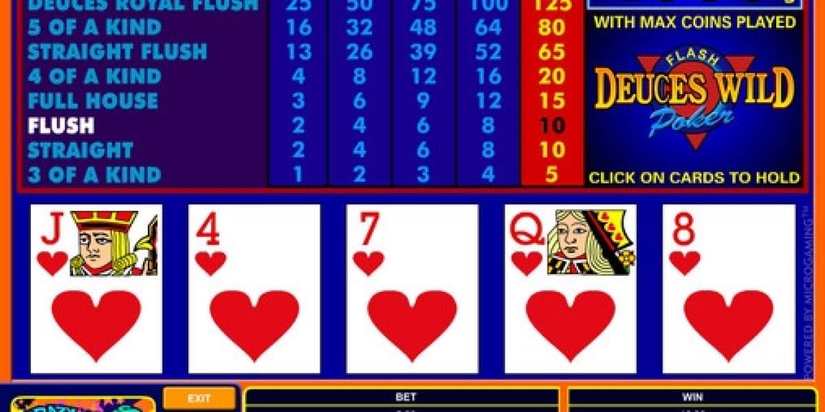 In Deuces Wild it is necessary to collect a paid hand provided by the rules. If necessary, you can exchange up to five cards once for free.