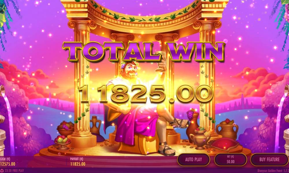 💰 What is the maximum winnings in the Dionysus Golden Feast slot machine?
