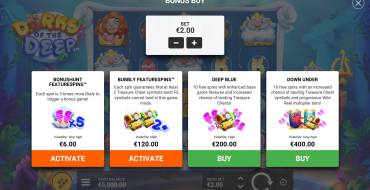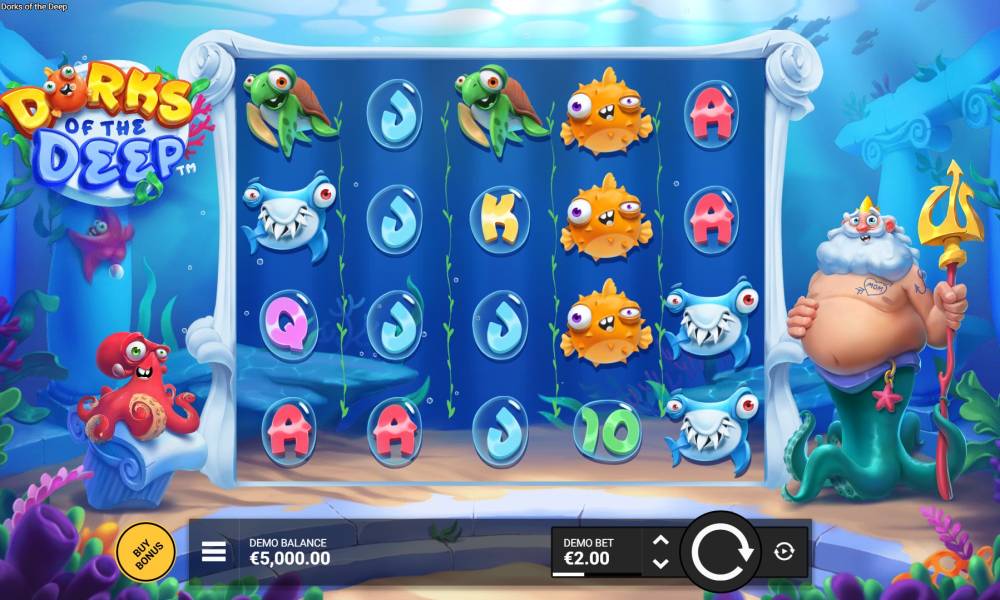 Dorks of the Deep features a 5x4 playing field, with 14 fixed paylines. A standard symbol counting system is used, allowing combinations of 3+ symbols in a row. The bet is chosen from a range of 0.1 to 100 euros, with a maximum win of x10000. The medium volatility makes the slot as attractive as possible. To the delight of players - the Buy Feature will be implemented in most casinos, as this feature is an integral part of the game, offering to purchase one of four bonuses. A total of 3 special and 10 row symbols are involved in the spins, which makes the gameplay somewhat complicated. Compensated for the inconvenience of two WIld symbols available in all game modes.