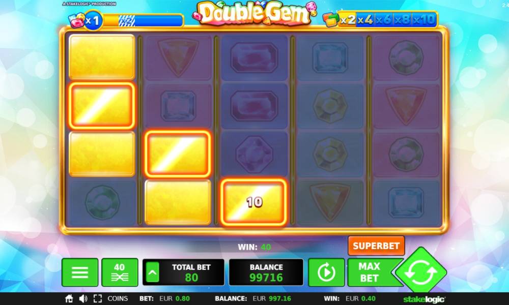Super Bet Game Multipliers – in this mode starting extra multiplier is x2 and it reach x10. Loosing spin reduces it for one point. These multipliers work only for combinations made of colorful cells.
