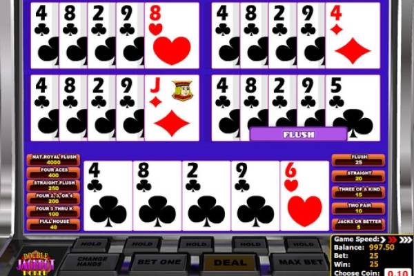 It is possible to play 5, 10, 25, 50 or 100 hands in the video poker Double Jackpot. It is not permitted to play on the same line.