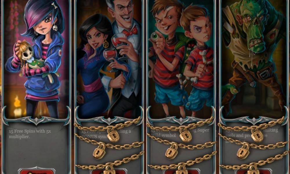 The bonus round of Dracula’s Family video slot is unusual free spins. It is available in four different versions. First the player has an access only to the first of them. After he takes part three times in it, the following level becomes available for him. Let’s check out nuances of each of the levels: