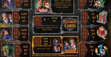 Playing Dracula’s Family slot machine is possible by any quantity of active lines from available number. The range of bets is quite wide, so this model would be interesting for the customers with different financial capabilities.