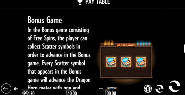 The Dragon Horn video slot is an online gambling game with five reels and fifteen cells for symbols at the screen.