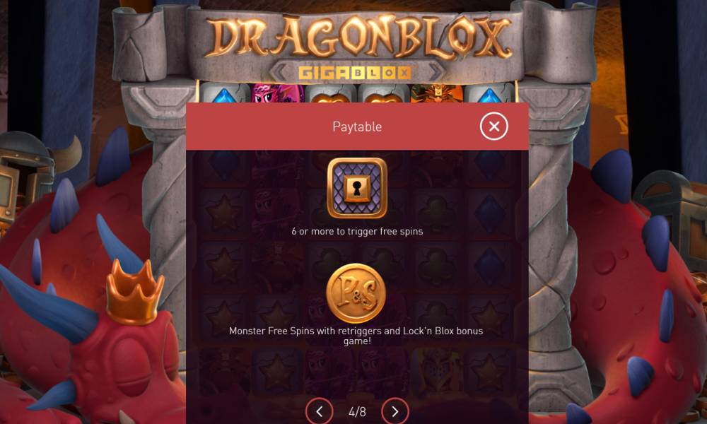 In our opinion, DragonBlox slot deserves attention thanks to the combination of exciting themes and interesting mechanics. Casinoz experts especially noted the GigaBlox feature, which adds to the game large-scale symbols and increases the chances of big wins. We also liked the Monster Jackpot bonus game, where Lock'n Blox symbols generate multipliers, making the gameplay dynamic and exciting.