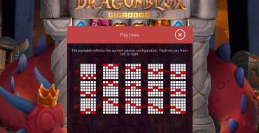 The playing field of the DragonBlox slot consists of 6 reels and 6 rows. The game provides 50 winning lines, on which form combinations of identical symbols. To win symbols must fall on the neighboring reels from left to right.
