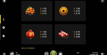Dragon's Lucky 25 has 10 symbols that can fall on 5 reels with 3 rows. There are fixed 20 pay lines, you can't reduce their number. The bet size is from $0.2$ to $40 (the range is the same in the demo version). And there is a risk round in the form of a wheel of fortune, where additional multipliers are collected, which can be added to the winnings (if you are lucky).