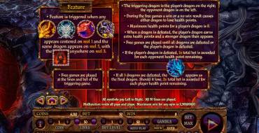 This game should suit the taste of the fans of dragon stories and the simple gamblers who prefer spectacular slots with bonus options. The advantages are the interesting features, the cool animation, the convenient interface and the stunning sound.