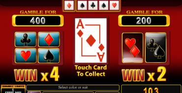 A game of chance is optional. It is suggested when any payoff is made. You need to guess a color or a suit of the dealer’s card to double up the bet or increase it four times. It is possible to play many times in a row, but you lose money in case of any mistake.